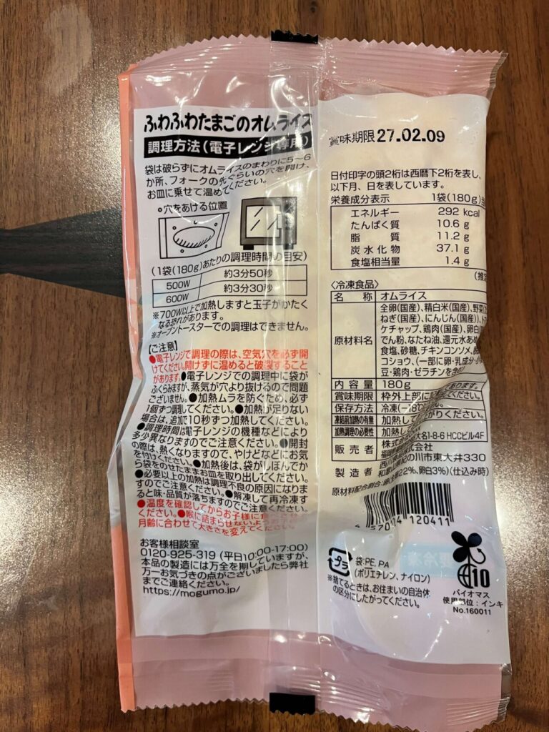 • mogumo(モグモ)オムライスの基本情報(量・原材料・アレルギー)