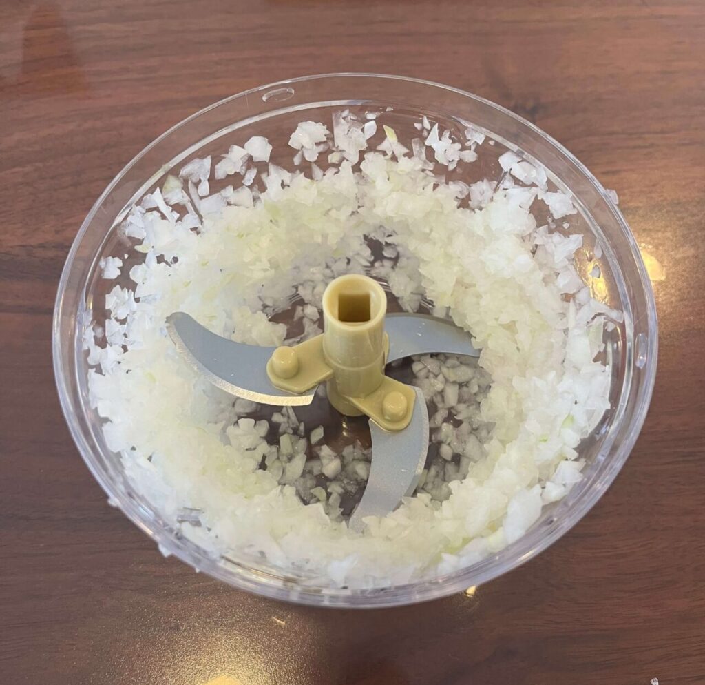 そんな時、たまたま買ったぶんぶんチョッパーで玉ねぎを刻んでみたら大発見!